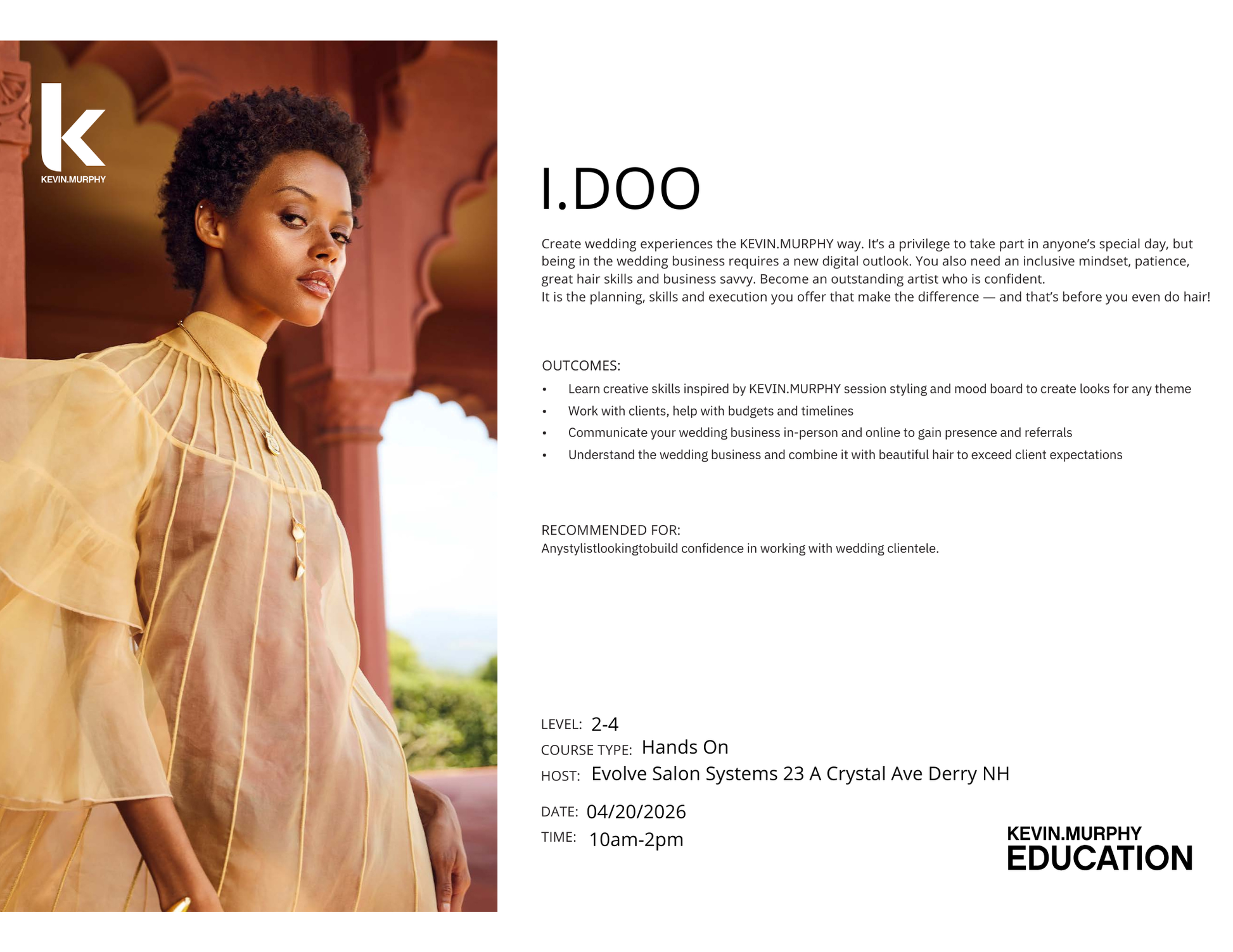 Create wedding experiences the KEVIN.MURPHY way. It’s a privilege to take part in anyone’s special day, but being in the wedding business requires a new digital outlook. You also need an inclusive mindset, patience, great hair skills and business savvy. Become an outstanding artist who is confident. It is the planning, skills and execution you offer that make the difference — and that’s before you even do hair! Down Style, Pony Tail, Updo